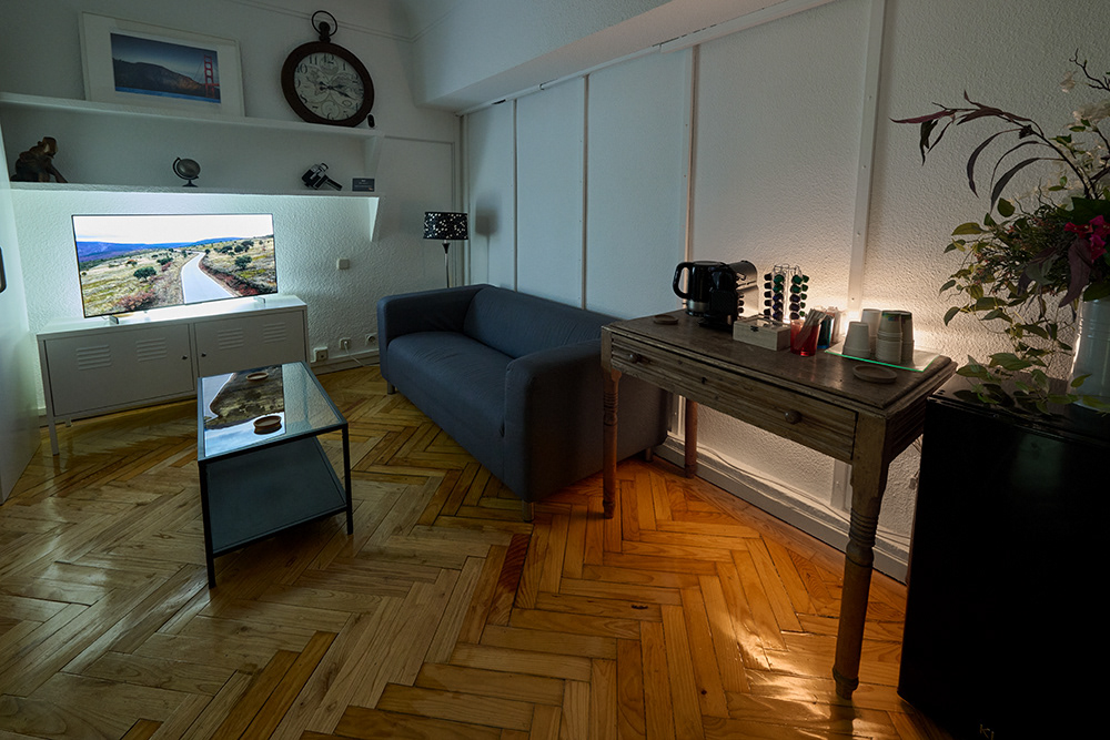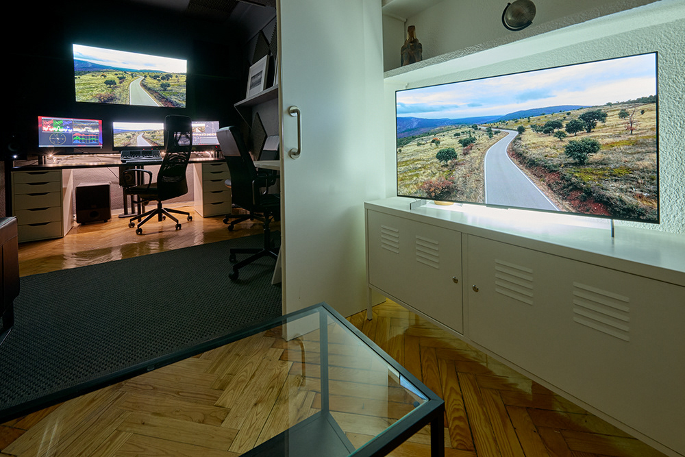 Cine (Sala 1, con proyección hasta 4k y colorimetría ajustada a DCI-P3 sobre pantalla de 103"), o TV (Sala 2, con monitor 4K HDR Grado 1).